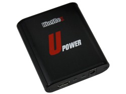 本体にリチウムイオン充電池を内蔵したモバイル電源ユニット。7.5Vの電流は直列つなぎのサンヨー3.75V高品質リチウムイオンバッテリー2個から供給される。5Vの出力は7.5Vをリニアレギュレーターで降圧して出力。スイッチング電流回路を使用しないことで、オーディオグレードの純直流電源が得られる設計となっている。充電時間は約7時間。「UD384」との組み合わせでは約12時間の使用が可能だ。