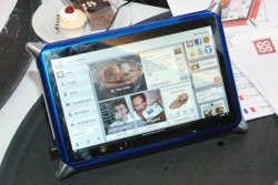 通信やストレージなどのシリコンソリューションを提供しているMarvellからは、”世界中の子供ひとりひとりにラップトップを”というコンセプトを持つ非営利団体「One Laptop per Child 」との共同プロジェクトとなる頑丈なタブレットデバイス「XO 3.0」の完全バージョンが出品されていた。