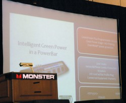 カンファレンスが開始され、最初に紹介されたのはパワープロダクツであるクリーン電源システム“Green Power”シリーズ。ホームシアターユースに向けて開発されたという「HDP1250G+」は、同社の「Green Powerテクノロジー」によって、本体に接続した機器を自動的にスタンバイモードにしたり待機電力をオフにする機能を備え、機器のオペレーションにおける電気代などを効率的に減らすことができる。