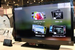そのほかソニーブースでは、Xperia新モデルとブラビアを接続し、スマホのインターフェースをそのままテレビに映し出して写真や音楽試聴を楽しむデモも行われていた。