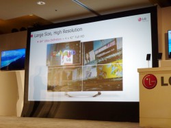 画質面での大きな特徴は、高いコントラストと鮮やかな色彩表現だ。液晶ディスプレイでは成し得なかった色再現を実現し、また同時に高速応答性も兼ね備えているため、動画再生の解像度も高い。今回のモデルには同社独自の「Film-type Patterned Retarder」(FPR)パネル技術を搭載しているとのこと。カンファレンスでは、製品の詳細を聞くことは出来なかったが、本モデルについては、後ほどブースのレポートにて詳しく紹介したいと思う。LGブースの展示内容も十分期待できるプレスカンファレンスだった。
