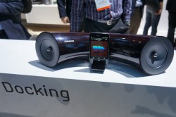 ユニークな製品群として注目したいのは、GALAXYシリーズと組み合わせて使うことが前提の、MicroUSB接続のドックスピーカーだ。iPhoneのドックスピーカー対抗するための製品群で、すべて価格は未定とのこと。