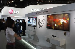 今回もブース内には数多くのテレビが立ち並んでいたが、そのほとんどがCINEMA 3Dに対応したモデルであった。展示されているCINEMA 3Dモデルは、「84UD」「LM9600」「LM9500」「LM8600」「LM7600」「LM6700」「LM6600」「LM6200」「PM6700」「PM6500」「PM4700」の11シリーズだ、大型から中型までのモデルと取り揃えており、多くのユーザーの要望に応えられるようにしている。