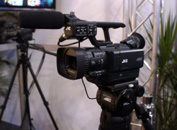 プロシューマー向けの新製品として話題を集めていたのが、4K撮影に対応した「GY-HMQ10」。ライブ4K出力を可能にする、JVC独自の“Falconbrid”LSIチップアレイを使用して処理している。4K映像(3,840×2,160)の24/50/60p撮影が行える。MPEG-4 AVC/H.264の4ストリームで映像を記録し、ビットレートは144Mbps。32GBのSDHCを4枚挿しした場合、2時間の録画が行える。
