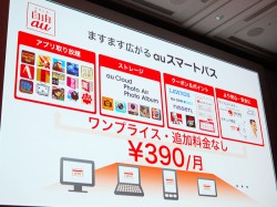 au スマートパスは、月定額390円(税込)でアプリの取り放題や、クーポン、ストレージ、セキュリティサポートといった充実したサービスが利用できるもの。一度サービスに申し込めば、その後追加料金等の発生はなく、ずっと月定額390円で対象サービスを受けることができる。