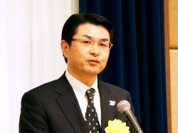 開会の挨拶に立った小野氏は冒頭で昨年の東日本大震災に触れ「2012年の新年を例年とは違った気持ちで迎えた方も多いかもしれない。復興支援のために出来る限り役立とうという思いを持った方がたくさんいることだろう」とコメント。「我々の業界では地アナ停波による需要とその反動による落ち込みもあった。時代の転換期を迎え、『がんばっていこう』と決意した方も多いと思う」と言葉を続ける。
