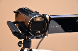 VX770は332万画素の1/4.1型 裏面照射CMOSセンサーを搭載。本体に32GBのメモリーを内蔵したほか、SDメモリーカードへの記録も可能だ。レンズはF1.2の明るさを備え、光学10倍ズームに対応したJVC HDレンズ。光学式の手ぶれ補正を採用し、ワイド端での撮影時には電子式のアクティブモード補正も併用できる。