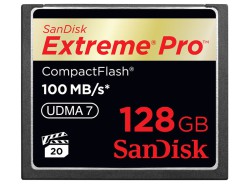 また、コンパクトフラッシュカードにも新製品を投入。新たにUDMA 7に対応したことによって128GBは最大100MB/秒、16〜64GBは最大90MB/秒という超高速転送速度を実現させた「サンディスク エクストリーム プロ コンパクトフラッシュ カード」を2月下旬から発売する。