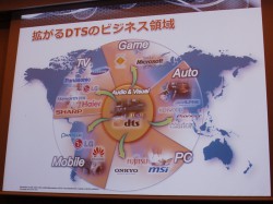 実際に同社の技術はホームシアター製品のみならず、LG社やPANTECH社といった韓国メーカーのスマートフォン/タブレットや、富士通、オンキヨーなど国内メーカーのPCなどに搭載されている。またテレビについても、パナソニックが欧州向け製品に、シャープが中国向け製品などにDTSデコーダーを組み込んでいる。さらにマルチデバイスに対応する新たなコンテンツ配信規格「UltraViolet」のオーディオフォーマットにも、DTSのサラウンドフォーマットが採用された。