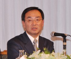 登壇した津賀氏は「初めて社長への就任人事を聞いたときには我が耳を疑ったが、時間が経つに連れて、当社が置かれている環境の厳しさに立ち向かう決意と、当社が事業体制を再編して臨んだ船出の舵を握るという大役に、心躍る気持ちが芽生えてきた」と述べた。