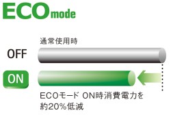 消費電力は175Wで、待機時消費電力は0.3W以下。また、使用時の消費電力を抑える新機能「ECOモード」も備えている。メニュー画面上の「ECOモード」をONにすると、OFF時に比べ消費電力を20%削減する。