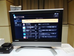 Google playのサービスには対応しておらず、Androidアプリは独自に用意された「光アプリ市場」で提供されるアプリが利用可能。ホームメニューにはプリインストールされたものも含めたアプリのアイコンが並び、付属のリモコンの十字キー操作などで選択して楽しむことができる。