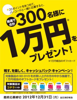 キャンペーンの実施期間は2012年4月2日から、同年12月31日(月)の当日消印まで。期間中に3度の応募締め切りが設けられており、それぞれの実施期間は下記の通りだ。