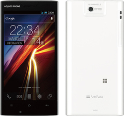 AQUOS PHONE SoftBank 104SHは、下り最大21Mbpsの高速データ通信サービス「ULTRA SPEED」に対応するモデル。本体は3.89mmの狭ベゼル、厚さ8.6mmという筐体の薄さを実現している。液晶は4.5インチのHD(1,280×720ドット)ディスプレイを搭載。プロセッサーは1.5GHz デュアルコアCPUを採用する。1,210万画素のカメラを搭載し、フルHDの動画撮影にも対応しているほか、30万画素のインカメラも備えている。DLNA機能にも対応する。