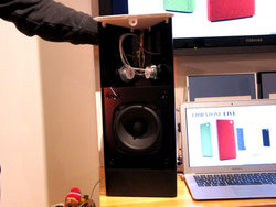 製品については、音質はもちろんデザインにもこだわったとのことで、「インテリアデザインのひとつとして置いてもらいたい。テーブルやソファなどと一緒に楽しんでもらいたいというコンセプトだ」とコメント。「これまでスピーカーというと伝統的なスタイルのデザインが主だったが、我々としては先進性のあるもの、インテリアとしても置けるデザイン性に優れたものを目指している」とも語った。