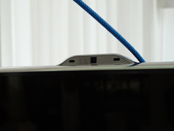テレビ本体のフレーム上側にカメラユニットとマイクを搭載。ジェスチャー操作はユーザーがカメラの前に手をかざして左右に軽く振ると、画面上にポインターが表示され、手のひらや指先の操作でポインターの移動や、「Smart Hub」のメニュー画面上に表示されているアイコンがクリックできるようになるというもの。