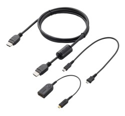 本体にはタブレットに組み合わせて使えるよう、HDMI micro端子対応の変換アダプタやUSBケーブルなども付属している。