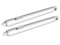 付属のソフトをインストールしたPCを本機に接続して投写すると、投写画面に付属のペンで文字や図形が描き込める「インタラクティブ機能」を採用。ペンは2本付属しており、同じ投写画面に2名同時に描き込むことが可能だ。ペンはマウスとしても機能し、投写画面上でプログラムの起動やファイルの選択など基本的なPCの操作も行える。