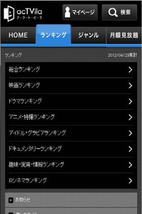 (株)アクトビラは、VODサービス「アクトビラ」の公式サイトをスマートフォン用に最適化。動画検索や視聴予約をスマートフォンから行える無料サービスを開始した。