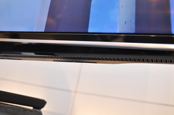 また音響面については「55X3」が薄型パネルの4隅に1つずつ、正面に向けてスピーカーを配置していたのに対し、「55XS5」ではベゼルの下側と本体背面に配置するインビジブルスピーカー仕様とした。