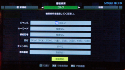 また録画面でも、番組検索のジャンル項目に「ゴルフ」を設定。1週間のゴルフ番組を検索してまとめて録画することができる。そのほかゴルフ専門チャンネル8日分の放送予定を一覧表示するほか、“連ドラ予約”機能を使ってゴルフレッスン番組の予約も簡単に行えるのをアピールしている。