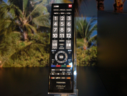 リモコンは数字キーの文字の大きさ・太さを約35%拡大し、視認性を向上。「ネットサービス」や「節電」ボタンなども備え、それぞれの機能を使いやすくしている。