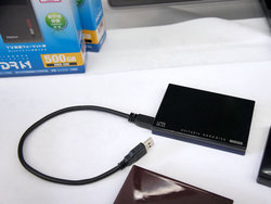 iVDR-S対応のUSB-HDDは、現在アダプターと一般的なUSB-HDDを組み合わせて実現しているソリューションを、ハードディスク単体で可能にするというもの。日立“Wooo”などiVDR対応機器と接続する際にはiVDRカセットとして、非対応テレビと接続する際には通常のUSB-HDDとして利用できる。なお、iVDR機器で録画したコンテンツと非対応機(日立以外のメーカー製テレビなど)で録画したコンテンツを混在させることはできない。型番もまだ決まっておらず、発売時期や価格も未定だとのことだった。