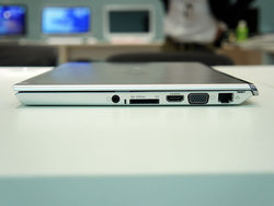 他社製のUltrabookに見られるようなクサビ形でなく通常のPCと同様のデザインを採用することで、HDMIやUSB、VGA、LAN、メモリーカードスロットといった各種端子類を標準装備させた。外部機器を使用するときにアダプターを不要とすることで利便性を高めたという。
