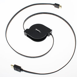 持ち運びに便利な巻き取り式で、コンパクトに収納して携帯できる。HDMI規格は1.4に対応。コネクタ形状は、HDMI−HDMI(タイプA−タイプA)と、HDMI−microHDMI(タイプA−タイプD)の2種類をラインナップする。コード長は1.2mで、質量は約80g。