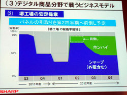 この点に対しては、シャープ単独として昨年度アメリカで100万台弱の需要があったことや、欧州でも大型モデルの需要が伸びていることを説明。「50インチ以上クラスで見ると、現在の60インチクラスの3倍から4倍の市場規模がある」とし、大型液晶パネルの需要が拡大していると説明した。「ホンハイとも、60インチ以上だけでなく、55インチクラスを取り込んでマーケットの中でシェアを拡大していこうという話をしている」という。
