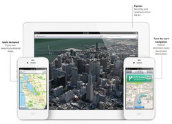 iOS 6では、地図機能を改善。これまではGoogleから地図データの提供を受けていたが、これをアップルがデザインしたものに変更。美しく、詳細な地図データを表示できるほか、都市の立体データを閲覧したり、ナビゲーションと統合したりということが可能になる。