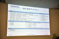 MHLでは、今年の4月に規格の最新バージョンとなる「2.0」を策定し、5月にはシリコンイメージが対応するICチップの開発を発表した(関連ニュース)。最新版「2.0」と、現行「1.0」との違いには、ICチップにおける1080/60pフルHD映像のサポートのほか、3D映像への対応、Unicodeのコマンド対応などが含まれる。またディスプレイからモバイル機器への充電機能が強化され、これまでの最小500mA/5V DCから、最小900mA/5V DCでの充電に対応するようになるという。シリコンイメージでは、今後テストスペックが固められたのち、1年前後で2.0対応機器の製品化が実現されると見込んでいる。
