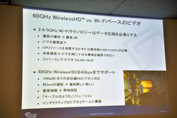 MHLの説明の後、竹原氏は「Wireless HD」の現状についても補足した。60GHzのワイヤレス伝送をベースにした同技術は、1080/60pまでの非圧縮の映像信号をワイヤレスで伝送でき、速度遅延がほとんど発生しないことが特徴となる。また機機どうしの直接接続となるため、帯域環境が保証されることもAV視聴環境を構築する上でのメリットになる。同社ではWireless HDの技術を今後も促進しながら、ICの高機能化・小型化・省電力化に注力していく考えだという。