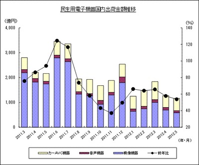 社団法人 電子情報技術産業協会(JEITA)は、2012年5月の民生用電子機器国内出荷実績を発表した。