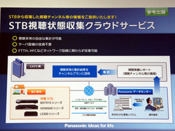 ソリューション関連では、クラウドを経由することでSTB設置の際の初期設定をボタン1押しで完了させることなどができる新サービス「STB保守管理クラウドサービス」をデモ。視聴率調査などにCATV局が利用できる「STB視聴状態収集クラウドサービス」のパネル展示も行っている。