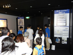 今週末からは、3D/2D対応シースルーモバイルビューアー“MOVERIO”(モベリオ)の体験展示も行われる。8月にアップデートされる本機の機能が体験できるよう、ワンセグチューナーと組み合わせた展示や、「(コンテンツ)持ち出し機能」の紹介も行われている(関連ニュース)。