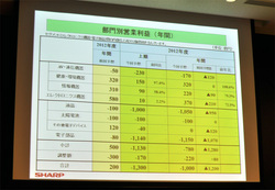 このほか、同社が展開する「健康・環境機器」「太陽電池」などの事業分野についても、それぞれ年間の売上高と営業利益に関する12年度の連結業績に関する修正予測が改めて示された。