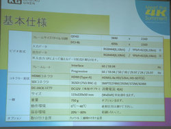 また、デモスペースの同社説明員は、使用用途について「例えば展示会に出展する企業が4Kコンテンツを上映するために使うなどといったケースが考えられる」と説明。例えば東芝の“4Kレグザ”をモニターとして業務用機器からの映像ソースを再生する、などといった使い方ができるという。