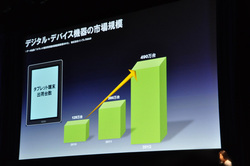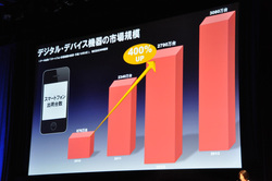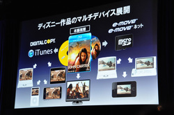 ディズニーでは、iPod/iPhone/iPadにムービーデータをコピーして持ち歩ける「DIGITAL COPY」や、SDカードに持ち出してスマートフォンや携帯電話、PCなどモバイル機器で楽しめる「e-move」に対応したタイトルを、現在まで15タイトル揃えてきた。同社ではスマートフォンの出荷台は今後も増加の一途を辿ると予測。2012年にはスマートフォンが2,790万台に、タブレットが490万台に到達するという調査データを紹介した。これを受けて今井氏は「ブルーレイ再生機器とテレビによる視聴形態だけでなく、モバイル再生環境で楽しむユーザーはますます増えてくるはず。ディズニーは作品のマルチデバイス展開を加速させつつ、“いつでも・どこでも”視聴可能なディズニー作品のメリットをアピールしていきたい」とした。