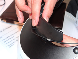 HMD部は、映像視聴時の没入感をより高めるため、ウェアラビリティの向上にも工夫が凝らされた。視聴時に額を支える「ヘッドパッド」は横幅を広くして、頭部にかかる圧を分散。ヘッドパッドの位置は前後で変更ができ、素材もよりグリップ感の強いものに変更しているという。スクリーン位置の目幅調整は左右独立で調整できるようになった。
