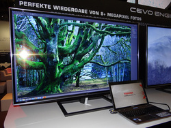 さらにHDMIからの4K出力に対応したdynabookシリーズのノートPCのプロトタイプも参考出展している。こちらは13年度に商品化が予定されているモデルで、今回はデジタルカメラで撮影した高精細な画像データをPCから4K REGZAに送り込み、手軽に画像編集が行えることが紹介されている。