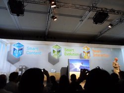 「スマートTV」への取り組みでは、まず同社のスマートTV向けアプリのダウンロード数が4,500万ダウンロードを達成したことを紹介。さらに新たな柱として「Smart Content」「Smart Evolution」に加え、「Smart Interaction」というコンセプトを訴求した。