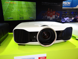 IFA2012会場にブースを構えるエプソンは、3D対応の液晶プロジェクター新製品を展示した。ワイヤレスモデルはトランスミッターの強化が図られ、5系統のHDMI入力を設け、HDMIスイッチャーの機能を持たせた。