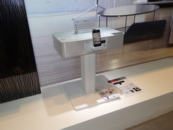 本体にiPhone/iPod対応のドックを内蔵しており、トップはベッドサイドのテーブルスタンドとしても活用できる。ヨーロッパの家具の高さ寸法に合わせて、国内で展開するモデルよりも脚部の長さをやや長めにとっているという。カラーバリエーションはブラックとホワイトの2色。