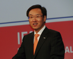 IFA2012のオープニング・キーノートスピーチに、セイコーエプソン(株)代表取締役社長の碓井稔氏が登壇し、同社の独自技術の紹介と、ビジネス戦略をテーマにした基調講演を行った。