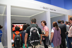 また、3Dの左目/右目用映像を利用して一度に2つのコンテンツを視聴できる「Multi View」は来場者の大きな関心を集めており、体験ブースには人だかりができていた。