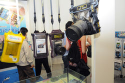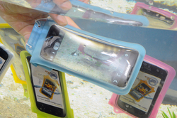韓国のDiCAPacのブースで展示されていたのは、「waterproof case」という製品群。iOSやアンドロイド端末を特殊なビニールでできたケースに収めることで、タッチパネルの感度を下げることなく、快適に水中での撮影ができるというものだ。