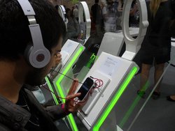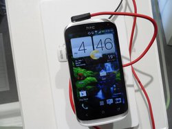 まず、ユニークな製品としてHTCの「Desire X」を紹介したい。4インチの液晶を搭載したミドルクラスの製品で、音楽を試聴することに特化したモデル。日本でもおなじみの高音質オーディオ機能「Beats Audio」を搭載。ヘッドホンを接続した状態によるデモを聞くと、騒音のある会場でも音楽がエネルギッシュに届くダイナミックなサウンドで、まさに音楽を楽しむための高音質スマートフォンという印象だ。