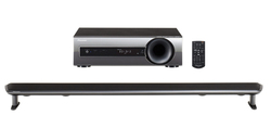 パイオニア独自の「HVT方式」のスピーカー“SOUND WING”を採用しているのが特徴。薄いスピーカーの両面から音を放射するため、あらゆる方向に音が広がるという。スピーカー部は900W×71H×93Dmmと薄型で、テレビ前に置いても邪魔にならない設置性を実現。壁掛けにも対応している。