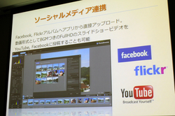 そのほか、写り込んでしまった不要なオブジェクトを画像解析により消去する「コンテンツアウェア削除」や、写真にオリジナルロゴやサインなどのテンプレートを挿入できる機能も用意。レイアウトを指定してプリントしたり、FacebookやFlickrへ直接アップロードすることもできる。